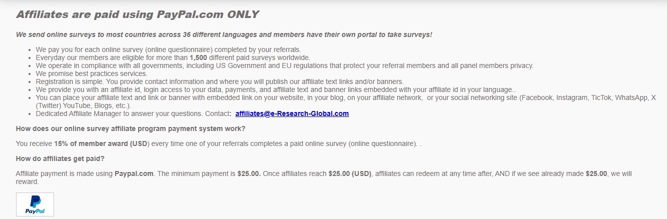 e-Research-Global offers an affiliate program for YouTubers, social media influencers, and bloggers. If you fall into one of these categories—or even a different one—you can apply through their affiliate program portal.