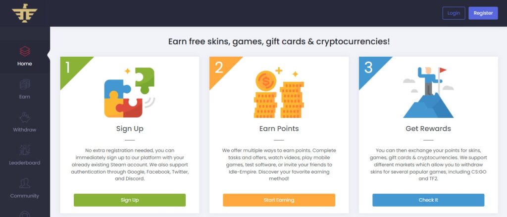 Idle-Empire lets users earn points in multiple ways. The platform includes different tasks, so users can choose the options that suit them best.