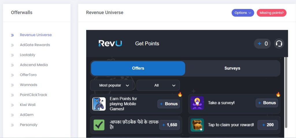 The number of OfferWalls you see will vary based on your country. Some OfferWalls also include surveys for extra earning opportunities.