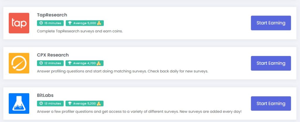 Doing surveys is the most effective way to earn more points on Idle-Empire. You can find surveys inside the survey panels available on the platform. The number of survey panels you see will vary based on your country, and users in top-tier countries usually get access to more panels.