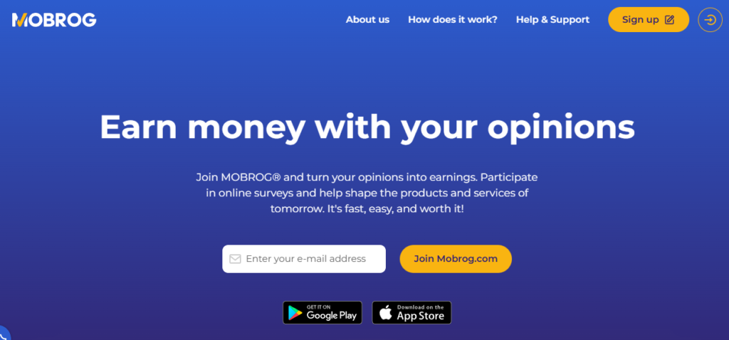 MOBROG is a paid survey platform that pays you for sharing your opinions through market research surveys.