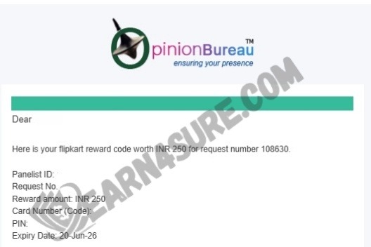 Opinion Bureau offers several ways to cash out your earnings. You can redeem your balance through PayPal, Bank/UPI transfer (wire transfer), Visa card, or gift cards.
